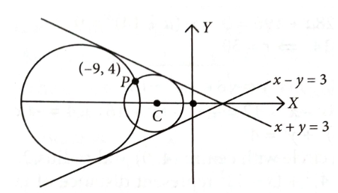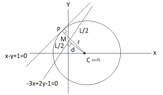 Hence, centre is \(\mathrm{C}(\alpha, 0)\).
