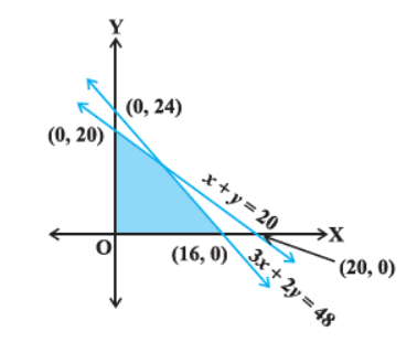 Also, \((0,0)\) doesn’t satisfy the \(3 x+2 y \geq 24\), hence region is away from the origin