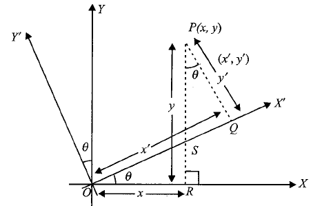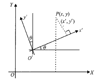 Let \(O\) be the origin. Let \(P \equiv(x, y)\) with respect to axes \(O X\) and \(O Y\) and let \(P \equiv\left(x^{\prime}, y^{\prime}\right)\) with respect to axes \(O X^{\prime}\) and \(O Y^{\prime}\) where \(\angle X^{\prime} O X=\angle Y O Y^{\prime}=\theta\)