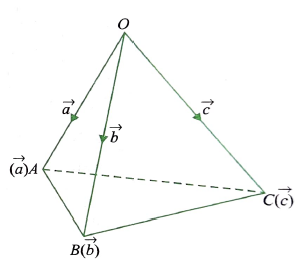 Normal to face \(O A B\) is \(\vec{a} \times \vec{b}\); normal to face \(O A C\) is \(\vec{a} \times \vec{c}\). Thus,