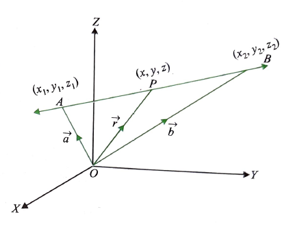 \text { Vector } \overrightarrow{P Q}=\left(x_2-x_1\right) \hat{i}+\left(y_2-y_1\right) \hat{j}+\left(z_2-z_1\right) \hat{k}