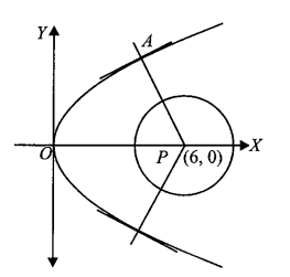 Solution: Centre and radius of the given circle is \(P(6,0)\) and \(\sqrt{5}\), respectively.