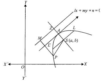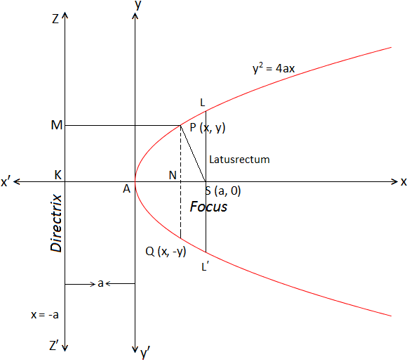 Consider the focus of the parabola as \(S(a, 0)\) and directrix be \(x+a=0\), and axis as \(x\)-axis.