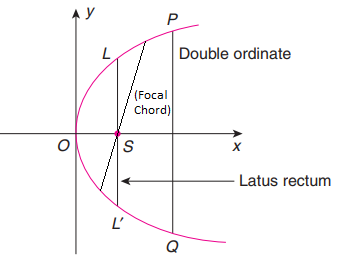 Let \(P\) be any point on the parabola \(y^2=4 a x\). A chord passing through \(P\) perpendicular to the axis of the parabola is called the double ordinate through the point \(P\).
