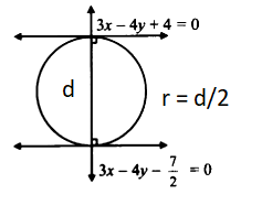 Solution: (c) To solve this, we follow the same logic as before: find the intersection of the diameters to get the center, and use the area to find the radius.