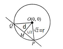 Step 3: Apply the Geometric Condition for Intersection For a line to be a chord (and not just a line outside the circle), its perpendicular distance \((p)\) from the center must be strictly less than the radius (\(r\)).