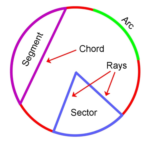 Segment: A segment is an area bounded by an arc and a chord.