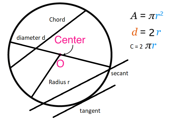 Center (Centre): The center is the point that is equidistant from all points on a circle. It is also called the origin.