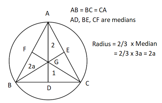 Example 2: The equation of a circle with origin as centre and passing through the vertices of an equilateral triangle whose median is of length \(3 a\) is [AIEEE 2002]