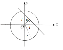 p=\frac{|0+0-l|}{\sqrt{1^2+1^2}}=\frac{|l|}{\sqrt{2}}