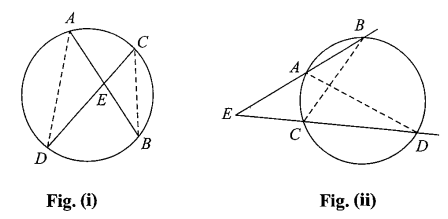 Secants \(A B\) and \(C D\) intersect insider the circle in Figure (i) and outside the circle in Figure (ii).