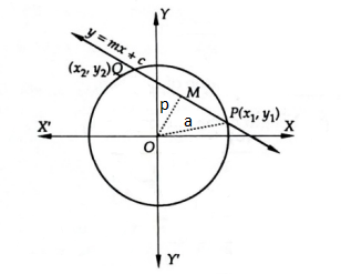 Step 2: Apply the Condition of Tangency For the line to touch the circle \(x^2+y^2=a^2\), the perpendicular distance \((p)\) from the center \((0,0)\) to the line must equal the radius \((a)\).