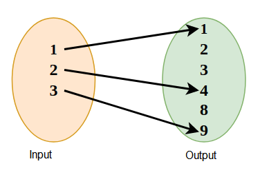 For example, The relation \(R=\{(1,1),(2,4),(3,9)\}\) and it is represented using following diagram: