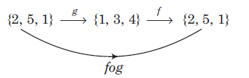Hence, \(f o g=\{(2,5),(5,2),(1,5)\}\)