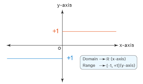 is called the signum function. Domain of \(f=\mathbf{R}\), Range of \(f=\{-1, +1\}=\{-1,0,1\}\)