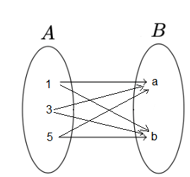 If \(A=\{1,3,5\}\) and \(B=\{a, b\}\), then the following figure gives the arrow diagram of \(A \times B\).
