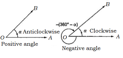 In trigonometry, the idea of angle is more general; it may be positive or negative and has any magnitude. Angles formed by anticlockwise rotation of the radius vector are taken as positive, whereas angles formed by clockwise rotation of the radius vector are taken as negative.