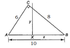Example 2.6: In triangle \(A B C, B C=8, C A=6\) and \(A B=10\). A line dividing the triangle \(A B C\) into two regions of equal area is perpendicular to \(A B\) at the point \(X\). Then find the value of \(B X / \sqrt{2}\).