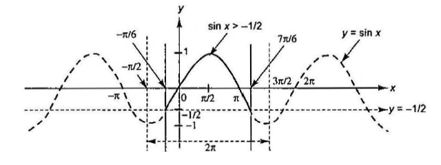 & \Rightarrow-\frac{1}{2} \leq 1-\sin x \leq \frac{1}{2} \quad \Rightarrow \quad \frac{1}{2} \leq \sin x \leq \frac{3}{2} \quad \Rightarrow \quad \frac{1}{2} \leq \sin x \leq 1
