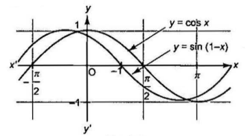 Solution: The given equation is possible if \(\sin (1-x) \geq 0\) and \(\cos x \geq 0\). On squaring, we get \(\sin (1-x)=\cos x\)