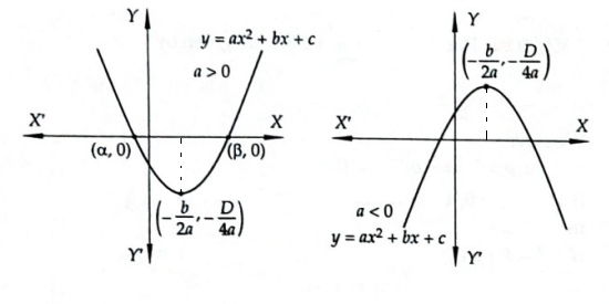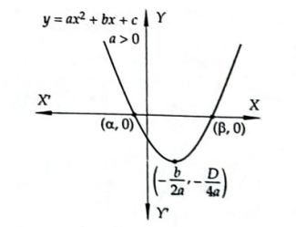 Case I: If \(a>0\), then \(f(x)\) will be negative only for those values of \(x\) which lie between the roots. From the graphs, we can see that \(f(x)\) will be less than zero for at least one positive real \(x\), when \(f(x)=0\) has distinct roots and at least one of these roots is a positive real root.