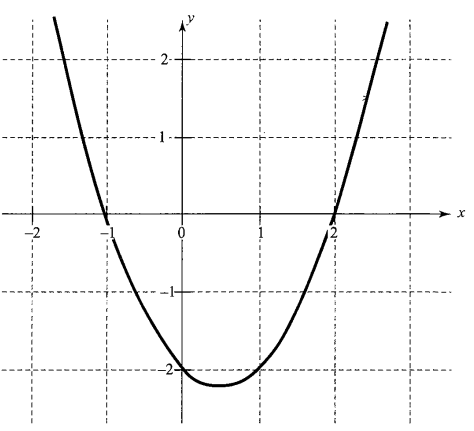 Illustration 2: Consider the function \(f(x)=x^2-x-2\), now for \(f(x)=0\) or \(x^2 -x-2=0\), we have \((x-2)(x+1)=0\) or \(x=-1\) or \(x=2\). Then graph of \(f(x)=x^2-x-2\) cuts the \(x\)-axis at two values of \(x, x=-1\) and \(x=2\).