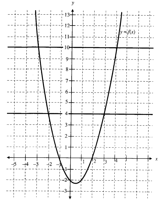 (c) Also roots of the equation \(f(x)=10\) are -3 and 4.